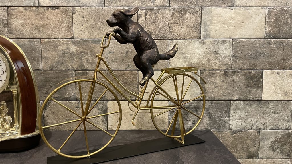 自転車に乗るワンちゃん。足がまったく届いてないところがキュートです😁